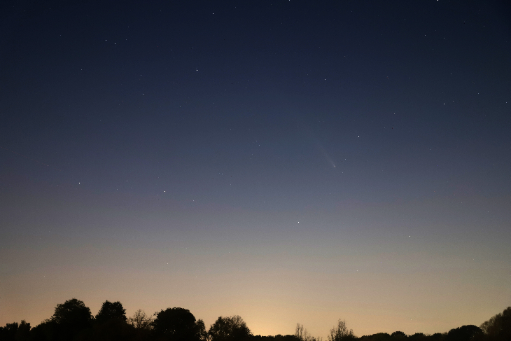 Comet C/2023 A3 Tsuchinshan-ATLAS photographed with a Canon EOS 6D MkII camera on 17 October 2024 at 1845 UT (1945 BST); 7 x 3 second exposures (total 21 seconds) / 50 mm / f4 / 1600 ISO merged in Sequator software, then image levels, contrast and brightness adjusted in Photoshop Elements.