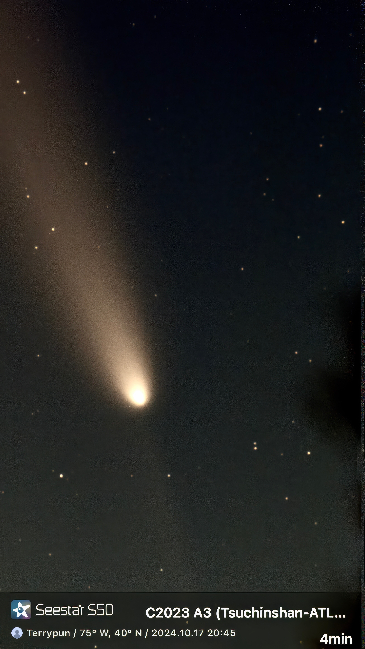 Seestar S50 used for this photo, but I had technical difficulties with visual interference by power lines in the way and only after the comet drifted very low in the sky was I able to get this photo