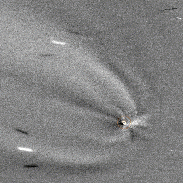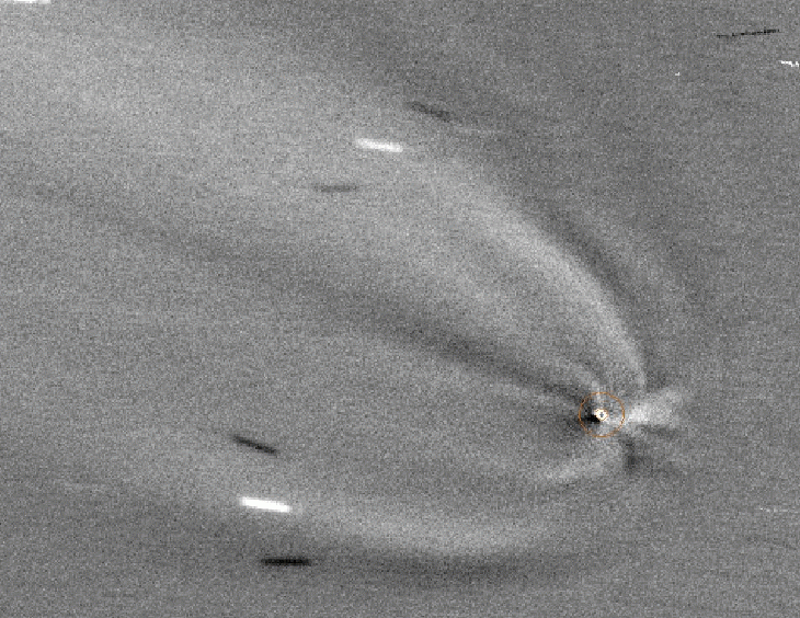 And the final result from last night's comet imaging session: evolution inside the inner coma of comet Tsuchinshan–ATLAS showing one dynamic jet moving quite fast. My previous estimation for the rotation of the nucleus (6hrs +/-1h) might be wrong, as, in my opinion, the fast movement of the measured jet could be the result of surface activity of some king, rather than the actual rotation of the body. This type of animations, using the Larson-Sekanina filter, are far more relevant compared to just two images. Sequence acquired with a 355mm F/4.5 Newtonian, ASI183MM in Bin 2x2, 11 series of 200 frames each, 0.5seconds exposure. 20 minutes worth of animation.