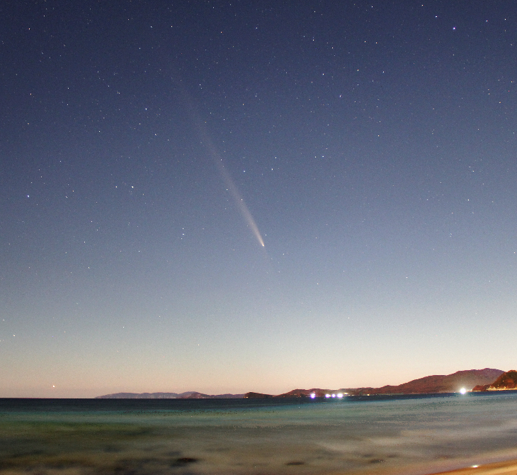 Comet C/2023 A3 (Tsuchinshan-ATLAS) - with Venus and anti-tail - above the Sea of Japan - on the evening of 2024-10-16, in Yuzhno-Morskoy (Nakhodka). I measured (with the naked eye) its brightness as +2.5 mag, the tail length is about 6°. Canon EOS 60D, stacked 62x15 sec. (ISO-1600, f/3.5, 18mm).
