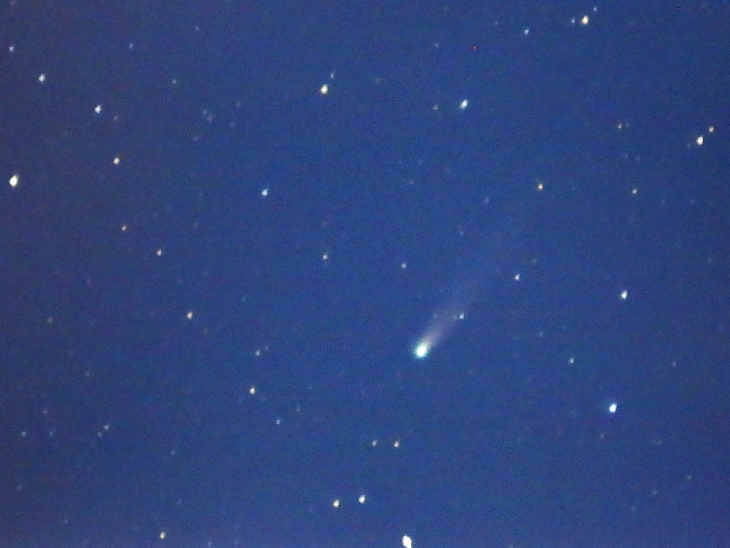 Been trying to nail this comet for 2weeks now but days were totally cloud covered. finally got it . using a pentax K100D with promura 135 x F1.8 lens. ISO 800 and shutter speed 2 sec, the comet head appeared to be a distinct intense greenish/white