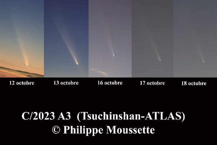 Comparison of comet C/2023 A3 (Tsuchinshan-ATLAS) day by day. same lens at 100mm with R3 and RF 100 300mm F2.8 as you see it is decreasing day by day.