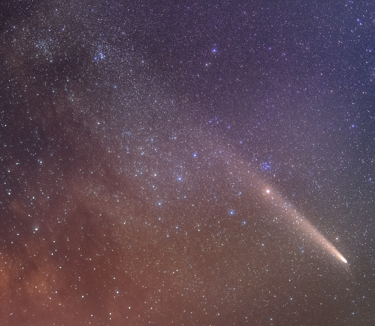 Despite not being a bright object for naked-eye observations, the Tsuchinshan Atlas Comet currently hovers and dances beautifully among the stars of the Milky Way!