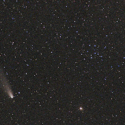 The tail reaches about 3° in length and in this photo it appears very close to the globular cluster IC4665.