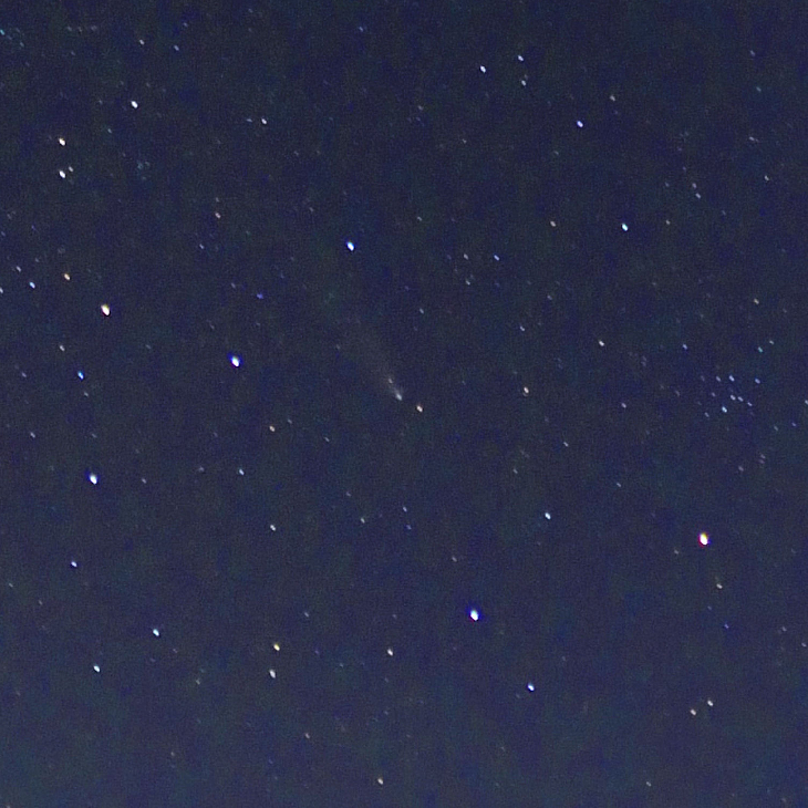 As of Wednesday night comet C/2023 A3 (Tsuchinshan-ATLAS) became invisible to my 7x35 binoculars. My 15x50IS binoculars could still spot it--including a 1° tail--as an easy averted-image object; in the photo it's almost 2°. But with predicted cloudy conditions for the next few days, the night probably marks the last time I'll see it visually in some way. I never did see it naked-eye despite a couple sessions spent in dark-sky locations. It's a strange comet: rather attractive in form but dimmer than expected and with unusually low contrast.