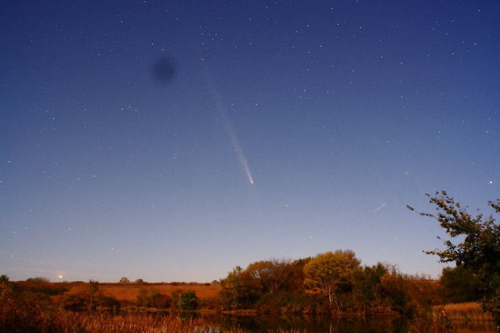 A very serene and beautiful, moonlit evening at the Shawnee State Fishing Lake north of Topeka, Kansas. As I made this 24 mm image of comet T-A, the calls of Barred and Screech Owls echoed around me. Both real and surreal simultaneously. ----------------- I declare today, November the 6th, a national day of mourning.