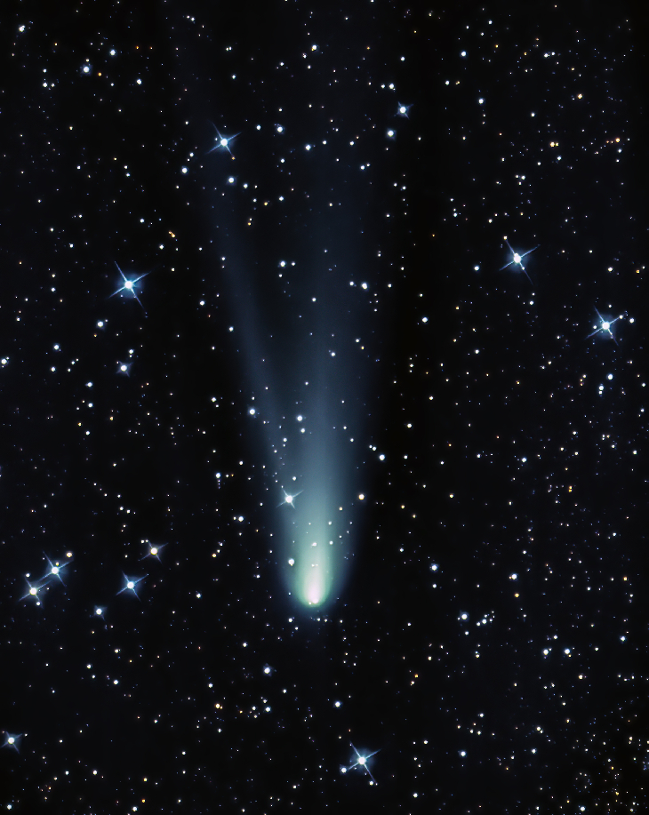 The comet has significantly faded and was about 8th magnitude. There still is some tail with the comet. This image is a stack of 20 five-minute exposures using a modified Canon T6i (ISO 800) and an 8-inch F5 reflector with sky watcher coma corrector.
