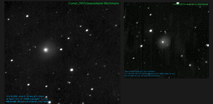 Seem to have another outburst 21. - 22. November. If so, it is very soon, only approximately 20 days after the first outburst. Here is the expanding diameter of the head, measured in arc-seconds :
