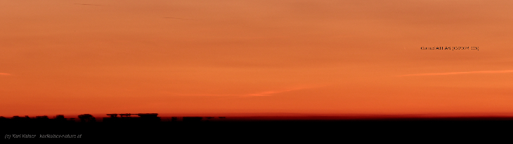 Yesterday the weather forecast for today's search for the comet was still very good; however, after an icy night, clouds unfortunately appeared during the day and covered the entire sky. It wasn't until late in the afternoon that the sky in the west cleared up, just in time for sunset. The air was extremely clear all the way to the horizon, making it the best conditions to photograph the comet Comet ATLAS (C/2024 G3) from Central Europe before it moves to the southern hemisphere of earth. There were also wonderful Alpine mirages that evening (note the left part of the picture). The black and white inverted image is a cutout of the color image.