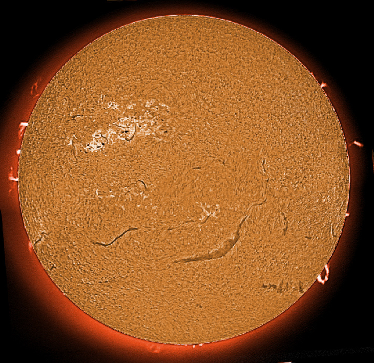 Complex spot system and some interesting prominences