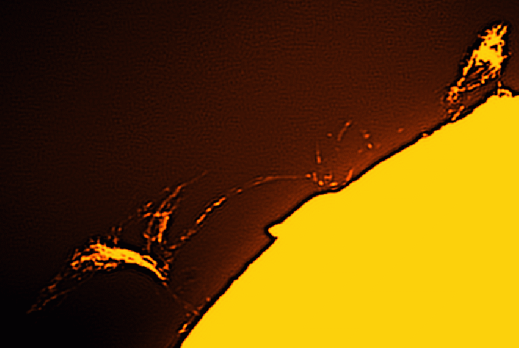 Managed to catch 2 big prominences suspended above the Sun. Some gaps in video due to clouds. DMK21 and 90mm PST mod. Software: DSSR, AS!, Wavesharp, DVS, Shotcut and Gimp