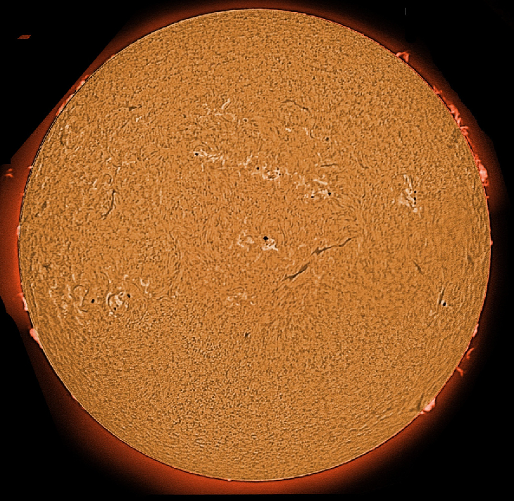A good selection of prominences and many spots.