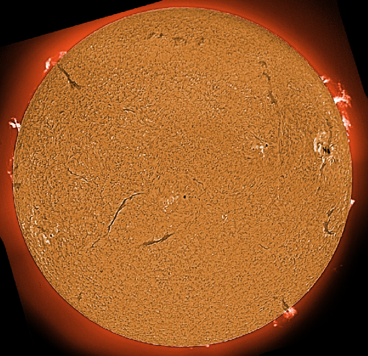 The juxtaposition of AR4079 and the adjacent prominences makes a fine sight. Also 2 nice filaproms.