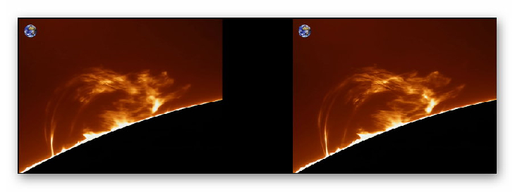 As frames were taken every min we can apply a trick to try to see the prominence in 3D. Just load 2 times the same video in a video editor and move one of the movie 1 frame to the right in the timeline then save as is.