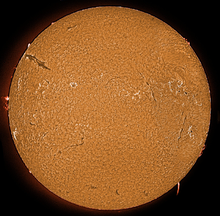 Striking filament in NE. Long thin prominence in SW.