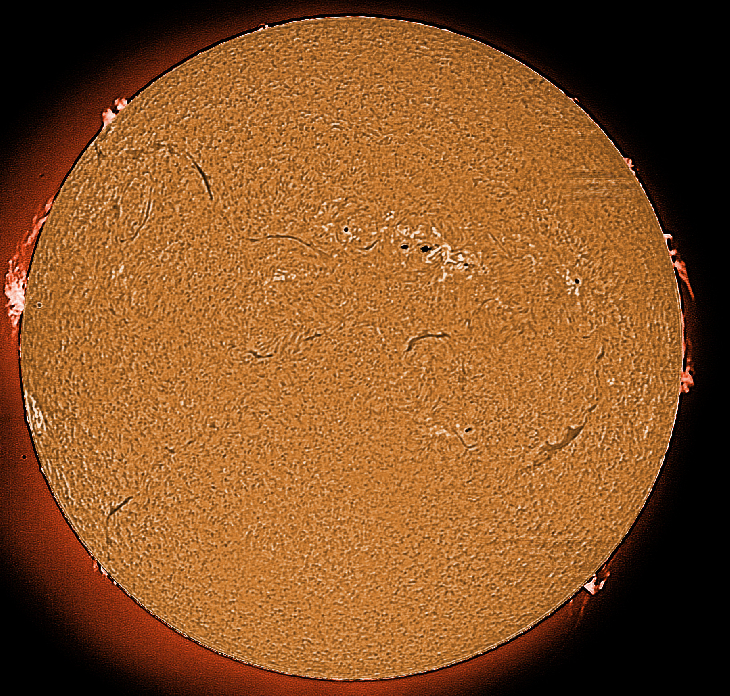Impressive prominences on both E and W limbs.