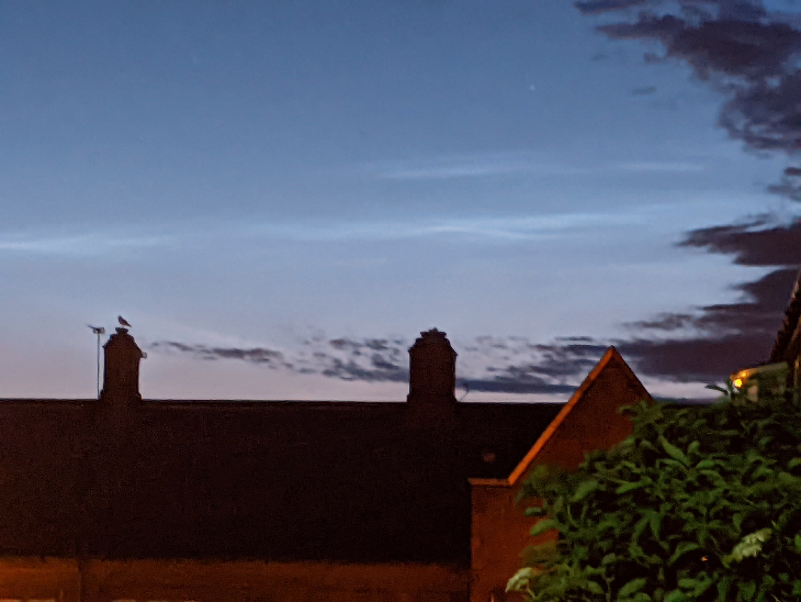 Noctilucent Clouds along the northern horizon at about 2350.Google Pixel 3A.