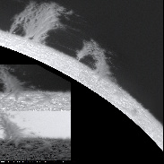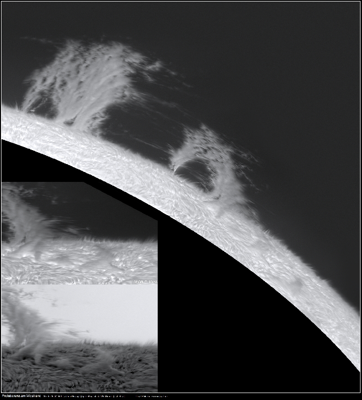 The beautiful prominence on the western side of the sun also showed its attractive side today. Note the delicate clouds in the foreground of the image, which make the spicules behind them appear to be slightly out of focus. It's a bit like on Earth, in a cloud everything looks very hazy and slightly out of focus.