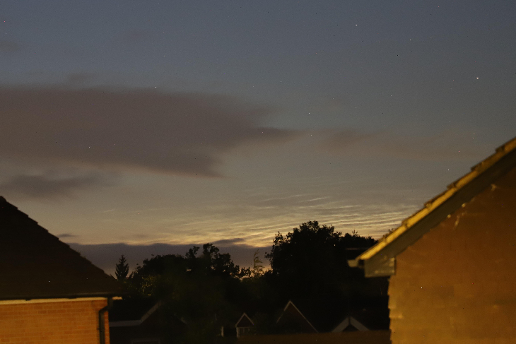 Noctilucent cloud: Wokingham, UK, (51.42 deg.N) 28 June 2025, 2336 BST (2236 UT).