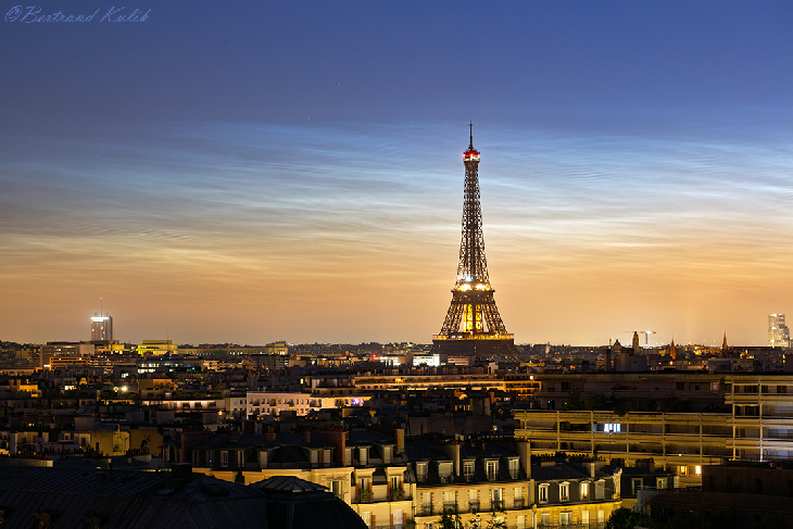 Some nice Noctilucent clouds were visible above Paris this morning. (3:40)