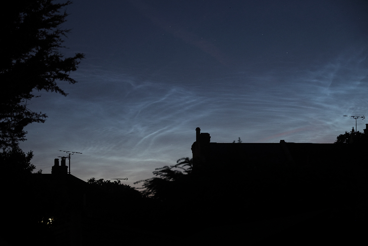 Noctilucent clouds visible on the horizon from the southeast corner of the UK.