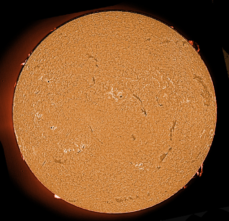 Prominences subsided but quite a busy surface.