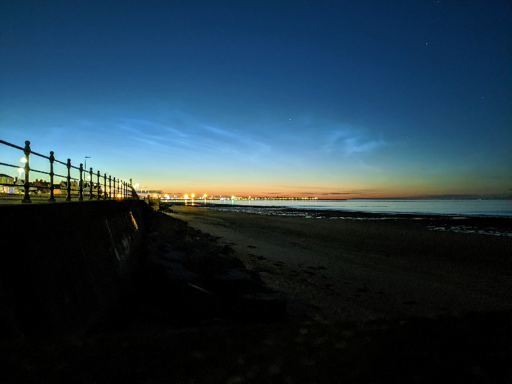 Noctilucent Clouds forming over Old Hartlepool and covering much of the due northern skies at about 2320 onwards.Google Pixel 3A.