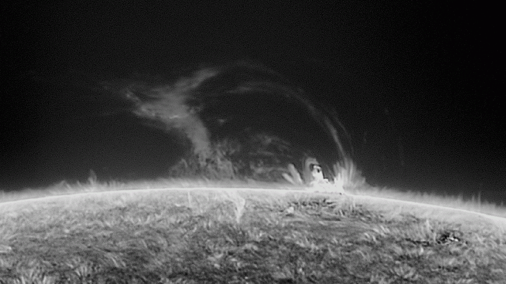 Curved prominences appeared, receded and reappeared.