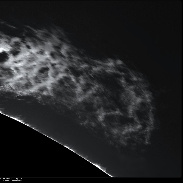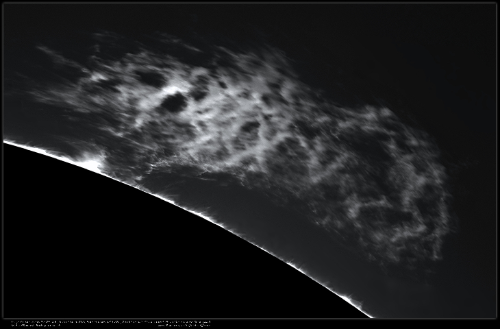 What a difference in these two prominences: One with enormous size and little dynamics, the other - not far away - small and full of explosive power.