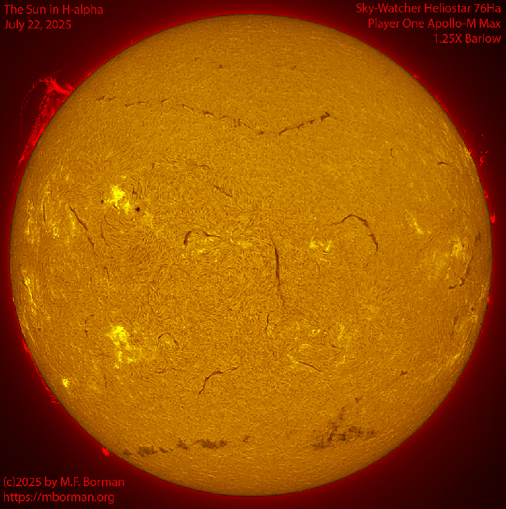 Some very long filaments on the Sun's disk again, and a nice big prominence on the northeast limb.