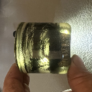 We’ve all seen the outline of a magnetic field in two dimension by placing magnets under a piece of white poster board with iron shavings or flakes on top. But we can only see the out-lines of the magnetic field. I wanted to see it in three dimensions. So I took a magnet and fetched some magnetite from the dirt in my front yard. My plan was to take a pudding cup and place a magnet at the bottom, filling the cup with clear resin. After the resin began to heat up, I started sprinkling the magnetite on top. The hope was that the magnetite would fall along the magnet lines. Instead the resin was too thick and the magnetite only floated on top. So I poured all the magnetite that I had collected to see if the floating structure would sink. It sure did! The floating magnetite structure appeared it was all going to sink to the bottom around the magnet, being a complete failure. Suddenly the resin began to harden at the perfect time. What the resin had captured was amazing. The structures that are suspended above the magnet look very familiar to the prominences we see on the sun. There is even an empty canal space void of any magnetite along the center of the magnet from pole-to-pole with a canopy above it. I added orange and yellow to the photo to give the magnetic structures an appearance as we see on the sun. How cool is that, a magnetite prominence frozen in time!