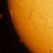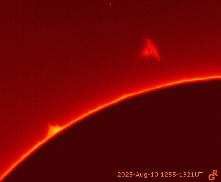The floating prominence on East border (also seen the two days before) now reveals its singular structure: a floating plasma cloud raining along some "legs", in the fashion of a "War of the Worlds" Martian tripod.