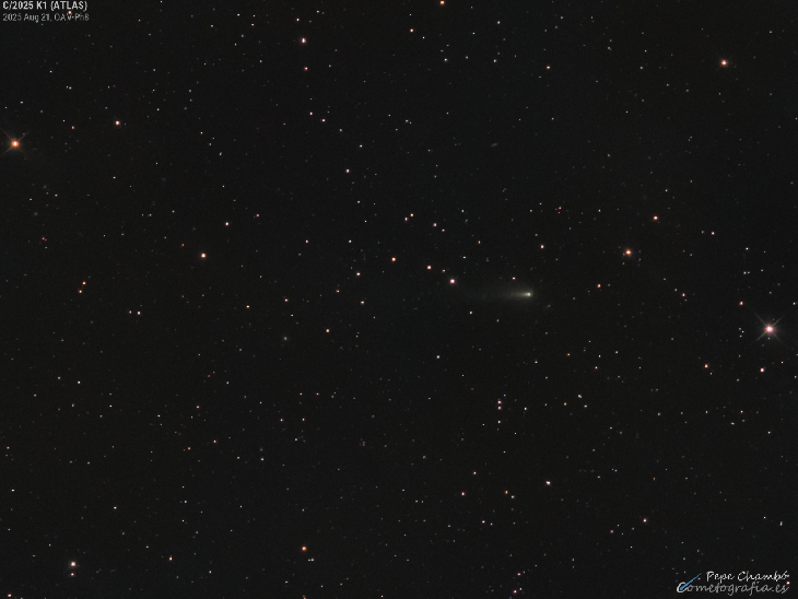 On August 21. 2025. just two hours after remotely imaging comet C/2025 K1 (ATLAS) from Namibia. I also captured it from my home observatory—though the images are hardly comparable. Beyond the differences in equipment and altitude above the horizon. local conditions were truly unfavorable. with poor transparency and smoke from the wildfires that were devastating the country at the time.