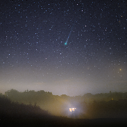 This morning, on 1st October, 2025 (around midnight UTC), I was finally lucky with the comet C/2025 A6 Lemmon from Proseč u Chrudimi, Czech Republic. The beautiful comet is now located in the Ursa Major constellation and starts to be circumpolar from northern mid-latitudes. My observation was truly dramatic as the approaching fog made the view and photography increasingly challenging. Eventually, here is the result, showing a truly significant ion tail of the comet, visible even in small binoculars. Small, but lovely comet, indeed! Used Nikon Z6III, Nikkor 135mm, f2.0, ISO 800, 59x30s from Vixen Polarie U (for ground one of the exposure with stopped mount)