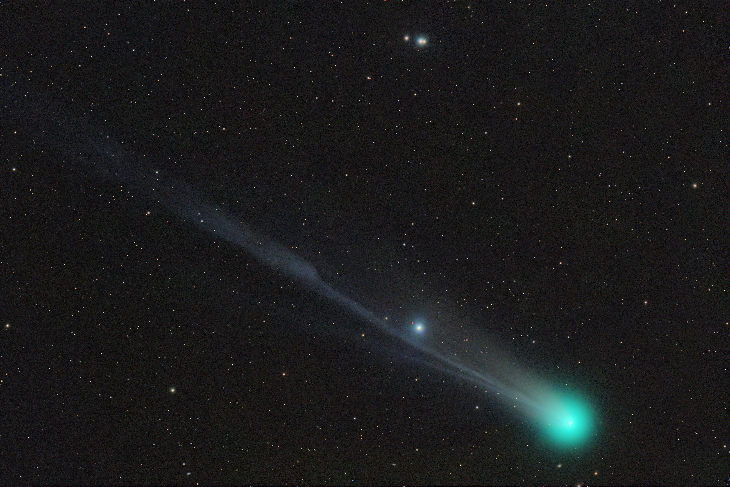 I watched Comet Lemmon from 3AM until 5:30AM this morning. This is a 5-minute exposure at 5AM local time, tracked on stars, taken with a Stellarvue SVX180-T and ZWO 6200MC cooled color camera. Stars colors are photometrically correct.