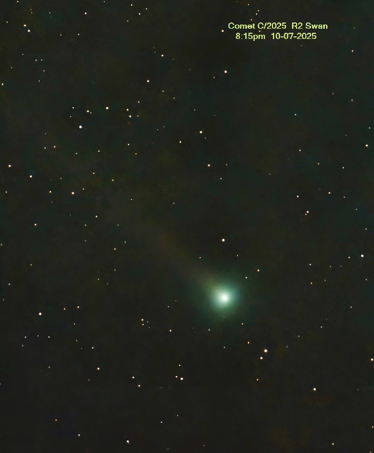 Skies here finally gave a hazy cloudy SW sky for us. Was able to capture several very short combined images of the comet Swan. Wednesday expecting cleaner sunset sky. Used a small refractor.