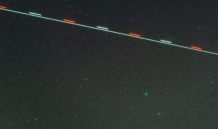 First chance to catch Comet C/2025 R2m Swan after some cloudy weather in Sunny Southern California and the moon getting out of the way in the early evening sky. Easy to find as just above and to the right of Antares. First find at 70 mm and then zoom in at 200 mm. Camera Pentax K1 and 70-200 mm zoom lens, iso 1600, F/4, and 40 seconds exposure, tracked using built in astrotracer function.