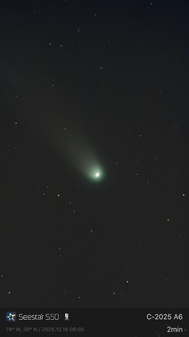 Camera Used: ZWO Seestar S50 Exposure Time: 120/1 Aperture: f/5.0 ISO: 80 Date Taken: 2025:10:16 06:06:01 |