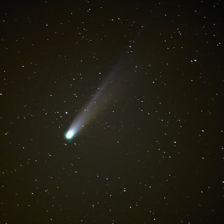 Comet C/2025 A6 LEMMON. Oct 20 2025. before cloud cover out near Rockyford Alberta Canada. Pentax K1Mark II f5.6 50" ISO 1000 at 450mm Astro Tracer on. Almost interfered with Elon Musk's starlink satellites. Got one single frame 1:1 shot just before cloud cover.