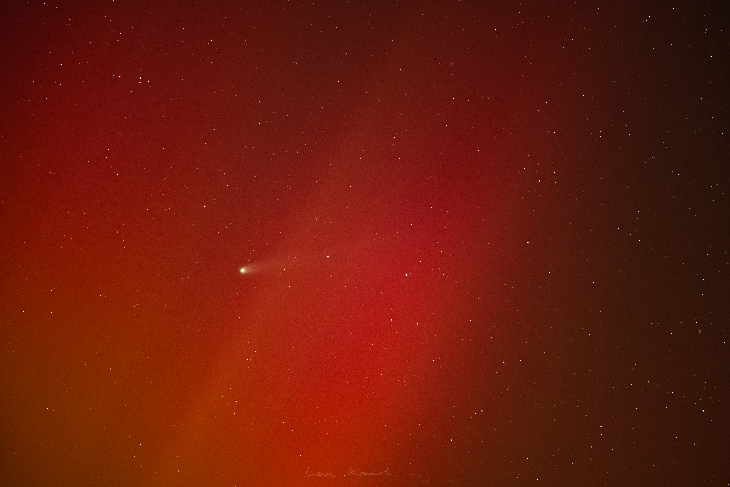 Comet Lemmon in red aurora, Fireball, SAR and RAGDA aurora