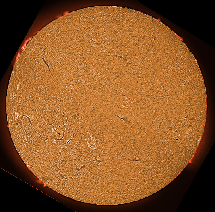 First time the Sun has been visible in almost 2 weeks. Even then could only see in VERY fleeting gaps in the clouds. So, conditions not good. Interesting filaprom in SE however.