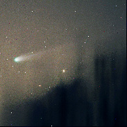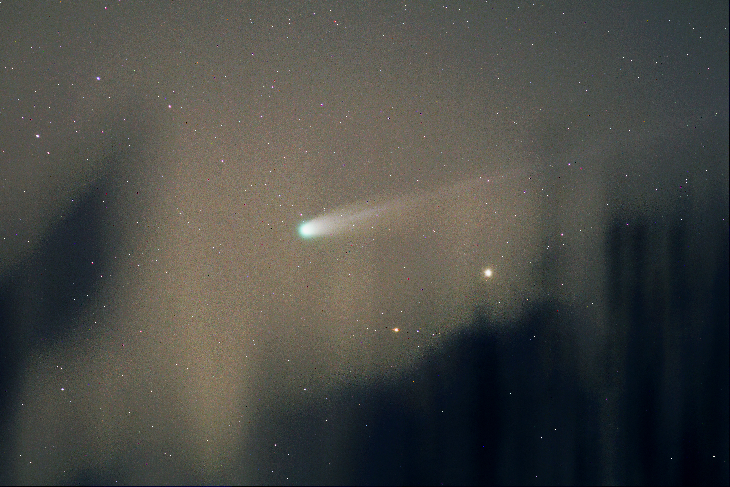 Comet C/2025 A6 (Lemmon). Inthe nick of time just before disappearing behind the tree.