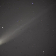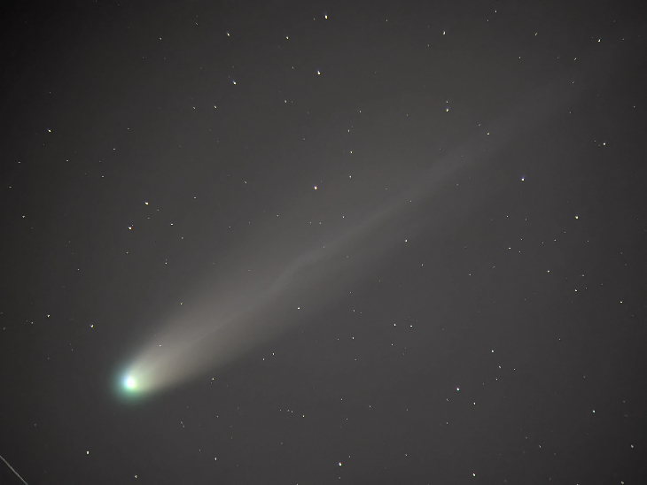 Approximately one hour after sunset. Knots visible in the tail. Google Pixel 8a Smartphone (NightSight Mode), attached to 32mm Celestron E-Lux eyepiece; Explore Scientific AR-152 Doublet Refractor. 16 sec exposures.