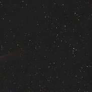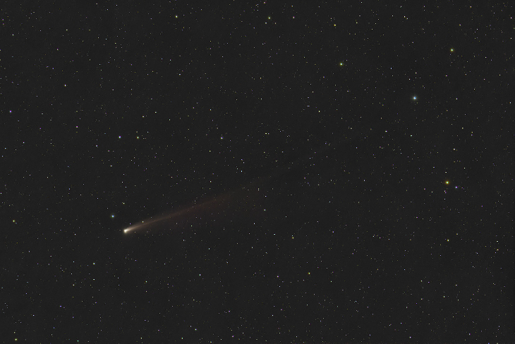 Curious lack of any blues or greens here, this shot is carefully G2V calibrated and reveals that the comet is mostly a golden hue.