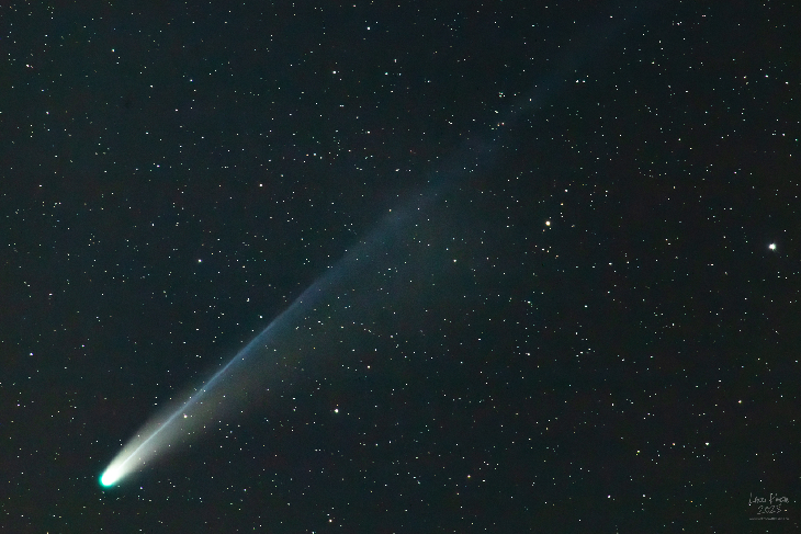 These images of Comet Lemmon were taken on Monday, October 27th at 9:03pm and 9:12pm just before bands of cloud moved in. The seeing was exceptional with excellent transparency without any haze or auroral glow. I was very pleased with the overall results considering the very basic set up with a small tracking mount (iOptron SkyTracker generation 1) which can barely support the heavy Canon 100-400mm lens and the Canon 6D MKII DSLR. The first photo was taken with a focal length of 400mm, exposure of 42 seconds, ISO 4000, f/5.6. The second photo was taken with a focal length of 220mm, exposure of 41 seconds, ISO 4000, f/5.0. These are single exposure images with no stacking. These are most likely the last images I will get considering the forecast and brightening moon. Thank you Comet Lemmon for being such a photogenic target and an inspiration for astrophotographers.