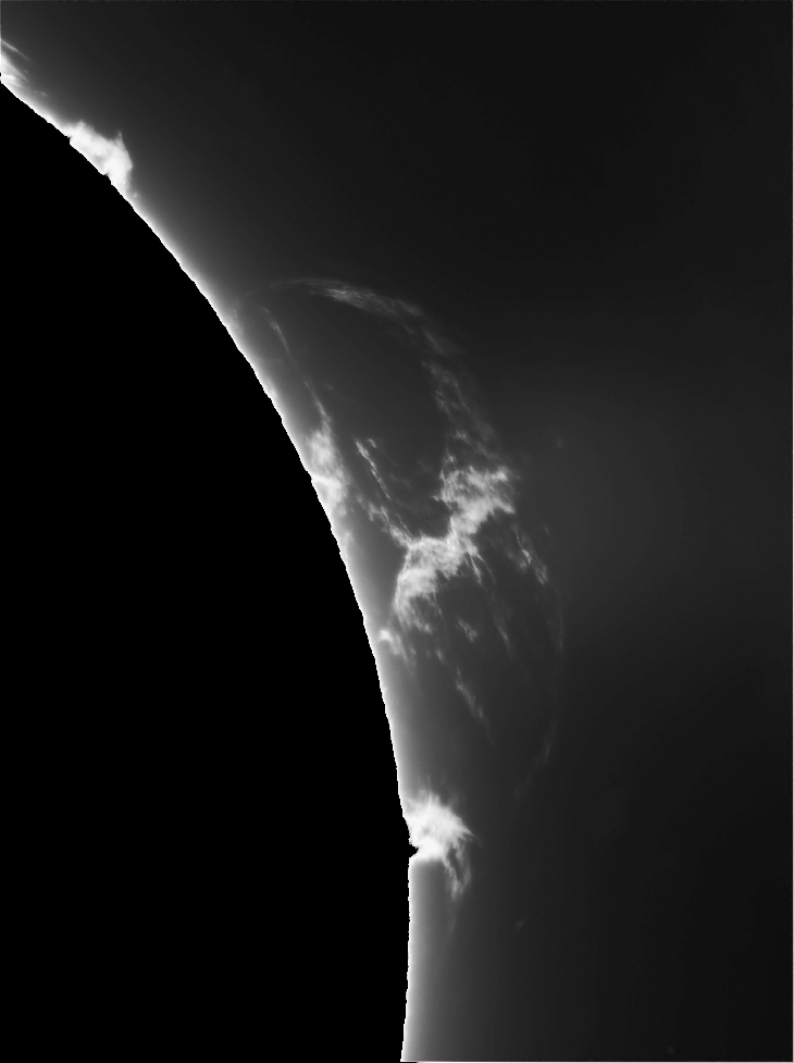 Todays view of the sun was spectacular. A long line of large prominence features on the western limb, and the giant AR4274 with flare activities in the center. Here is a quick view of the humongous prominence.