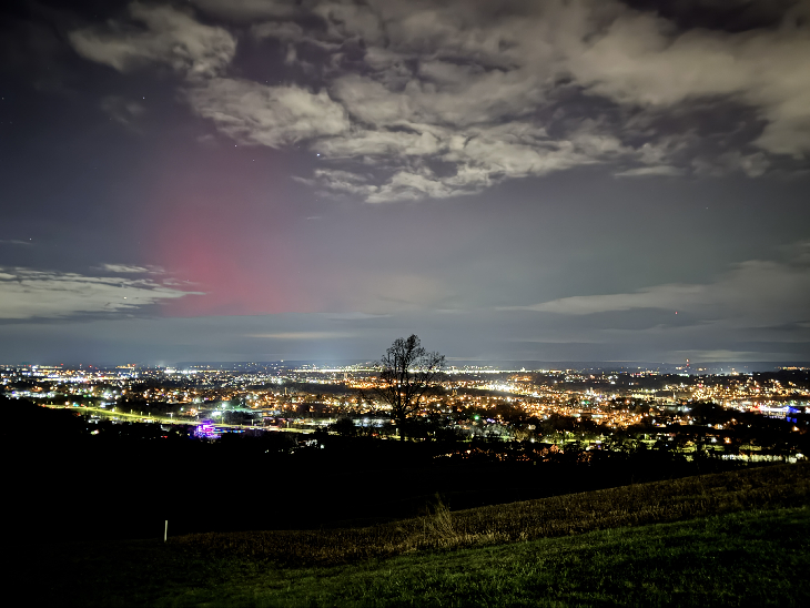 Aurora was visible above the lights of Easton, PA from Morgan Hill overlook.
