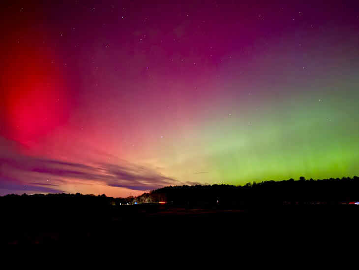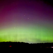 The color of these auroras, especially the red, started to become visible to the naked eye but mostly stayed as a misty glow. Mixture of edited and unedited iPhone camera photos.