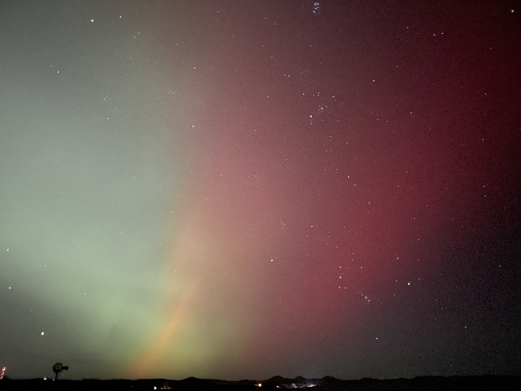 Green and red auroras were visible to the north and then some of the red went overhead. An amazing show!