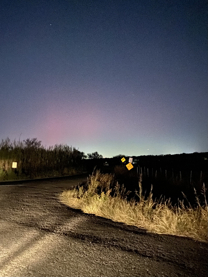 This evening’s auroras were pale and only visible through the iPhone camera, however, we were surprised and pleased that we could see them at all considering our location in south central Texas, latitude around 29.88. Pictures taken with iPhone at 3s exposure.